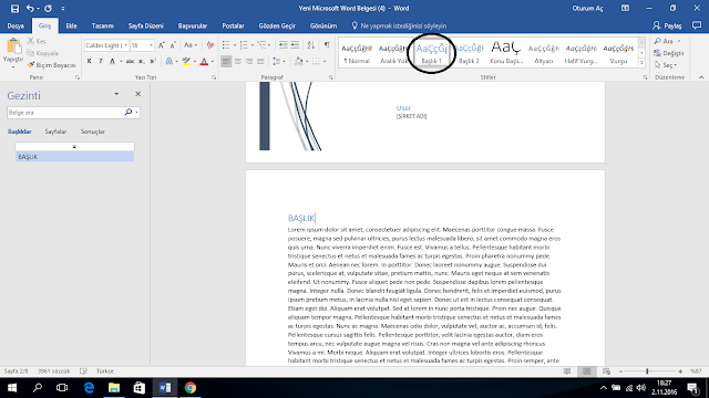 9- Herşeyi hazırladınız ama başlık koymayı unuttunuz hemen giriş sayfasına geliyorsunuz anlatıcagınız konunun başlığını yazıyorsunuz tabi ki ben burda örnek göstermek için başlık yazdım ilk başlığı oluşturmak için yuvarlak içine aldığımız başlık 1 tıklıyarak başlığımız olmuş oluyor.